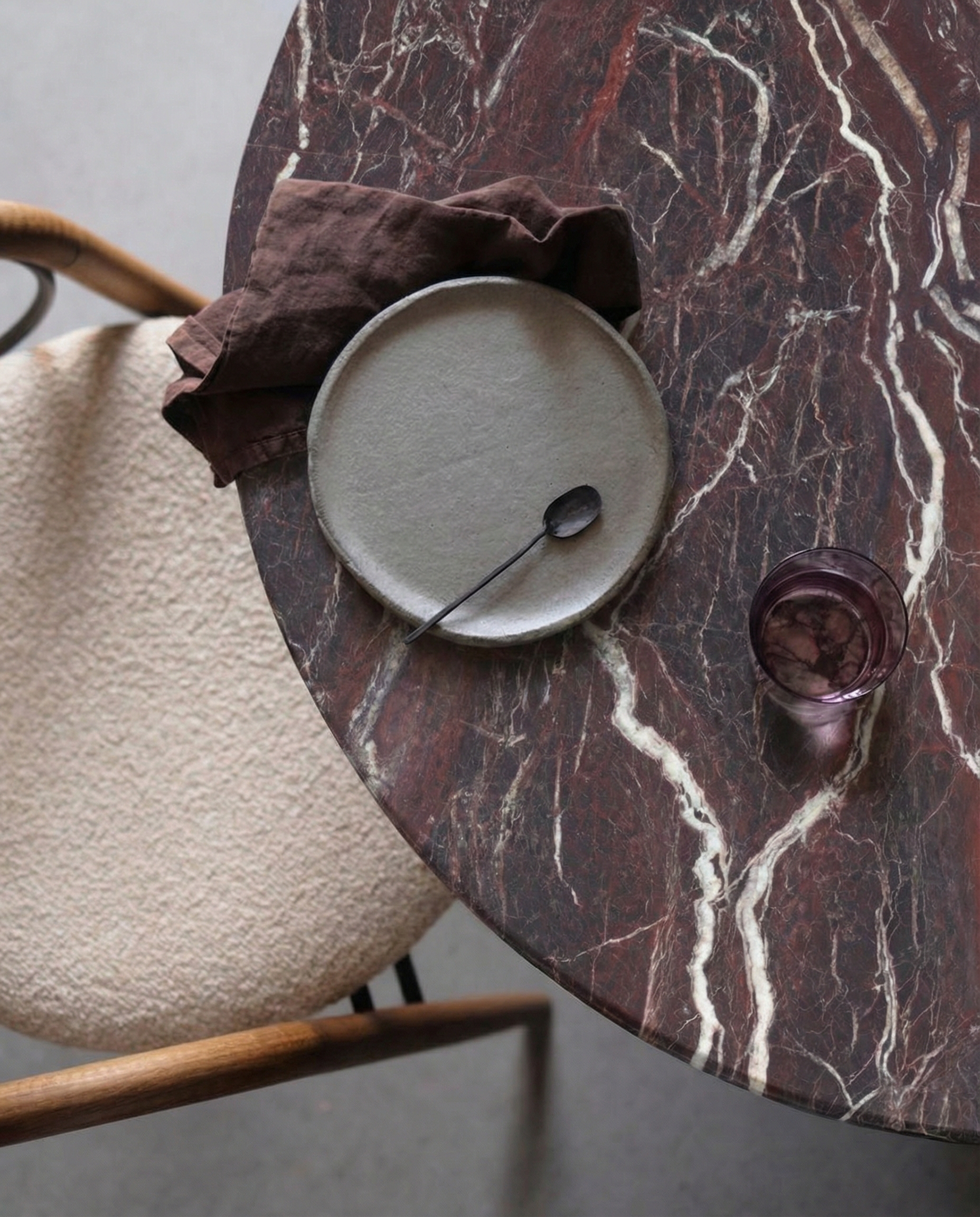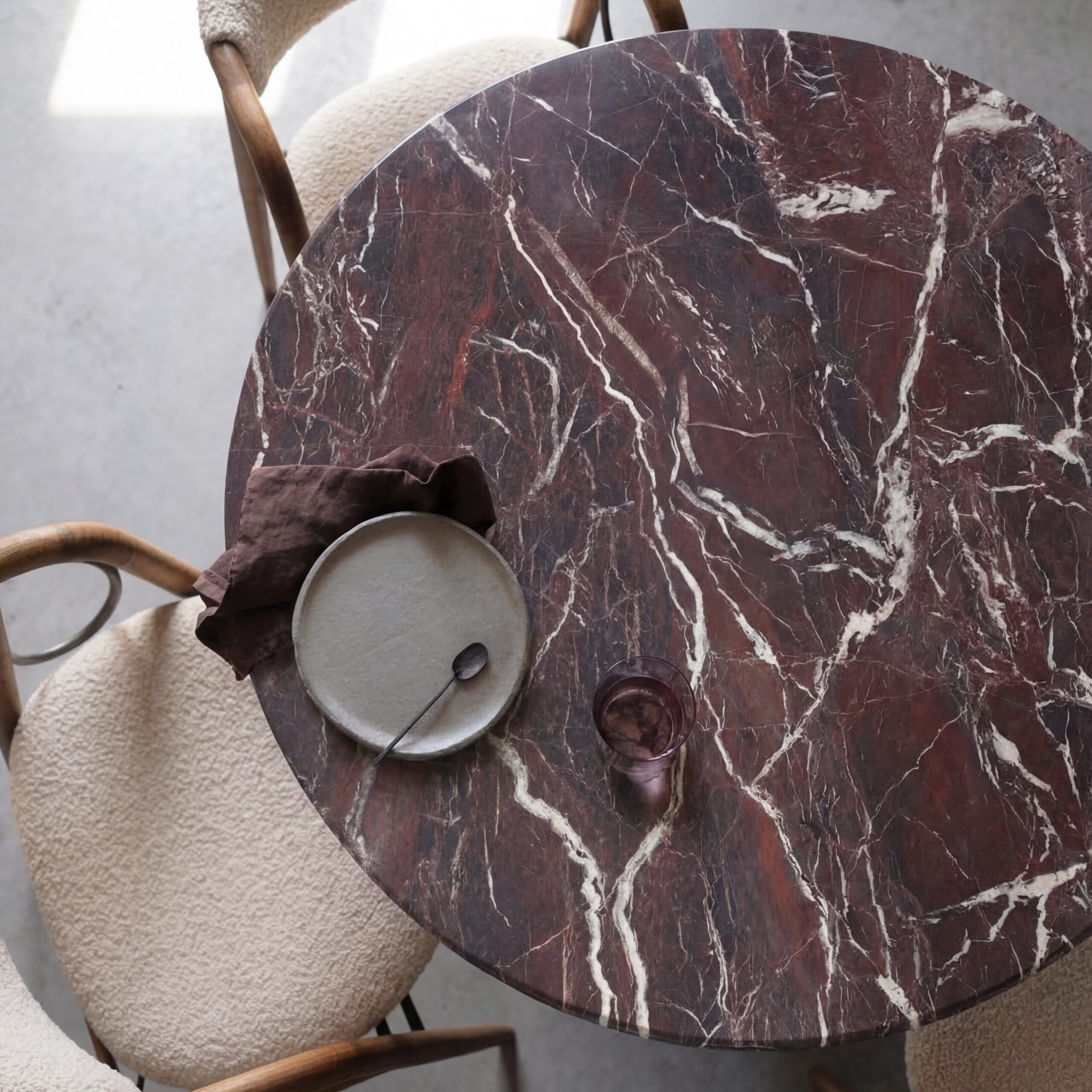 طاولة طعام دائرية من رخام روسو ليفانتو
