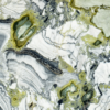 رخام آيس جيد (Ice Jade Marble) يجمع بين درجات الأخضر والأزرق والرمادي على خلفية بيضاء. شفاف جزئيًا وأنيق، مثالي للمشاريع الداخلية الفاخرة.
