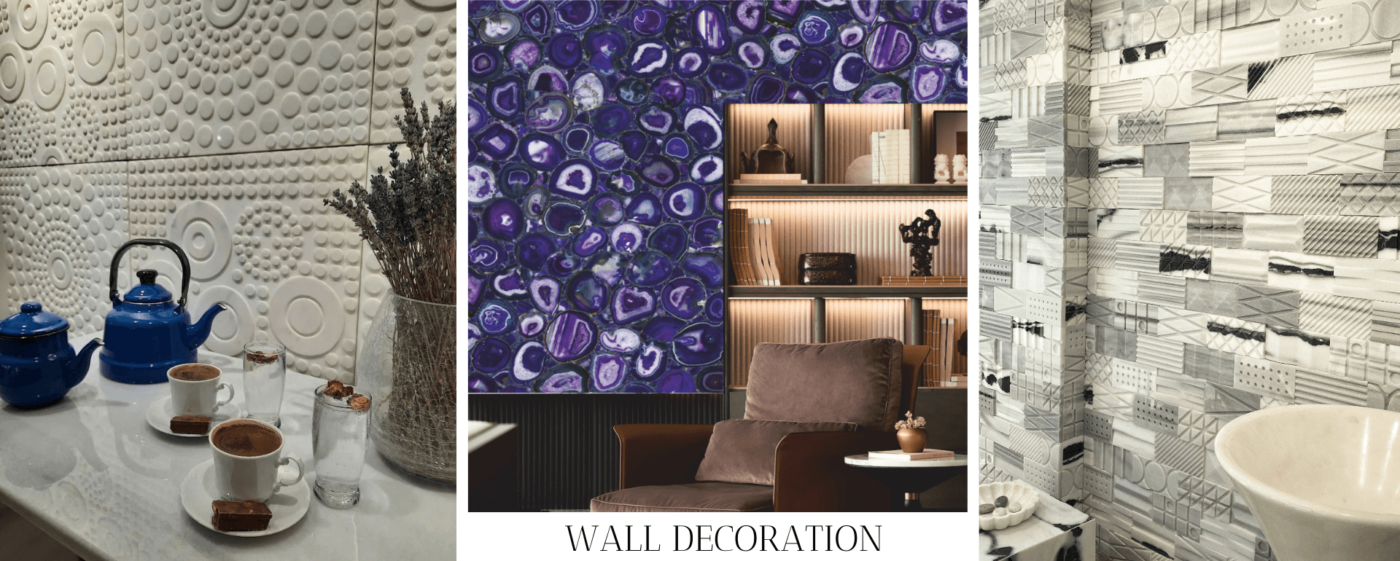 Marble slabs are becoming increasingly popular as wall coverings, adding texture and visual appeal. Marble’s natural patterns ensure that each application is unique and adds an aesthetic touch to any space, whether for a feature wall or around a fireplace.