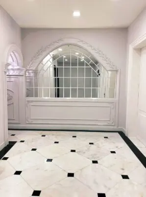 • Used Stones: Afyon White A La Vogue, Nero Marquina