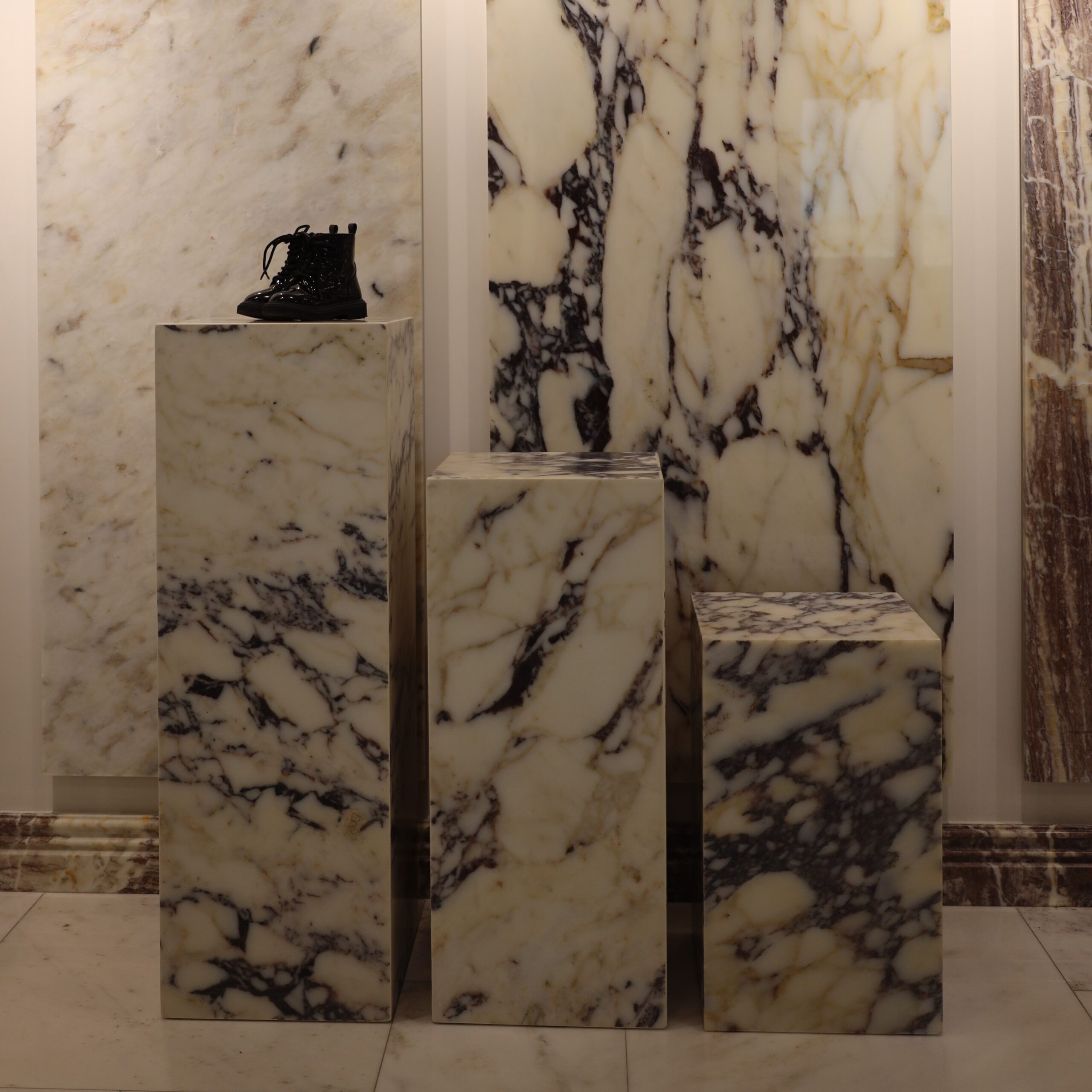 Ensemble de 3 Tables Dresoir Colonne en Marbre Calacatta