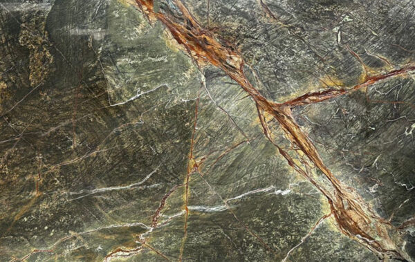 Rainforest Green marble from India features tree-branch-like veining in earthy green and brown tones. It is a luxurious choice for bathrooms, fireplaces, and flooring.