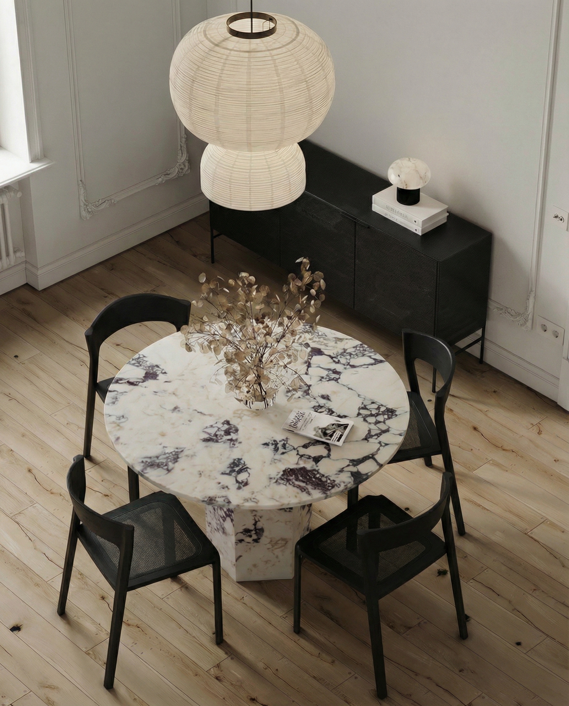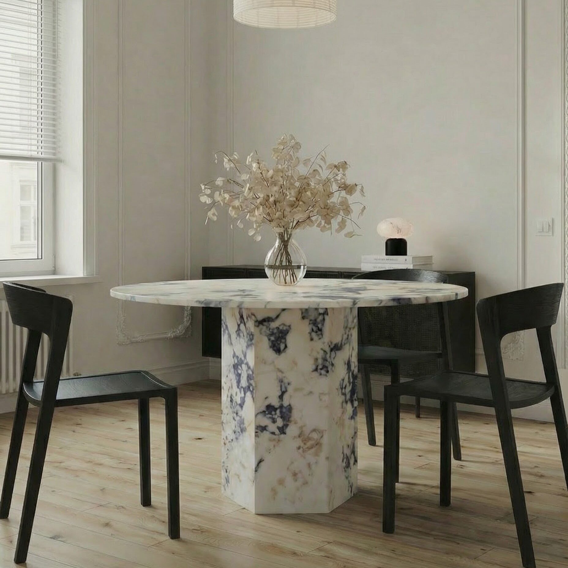 Calacatta Mermer Yuvarlak Yemek Masası